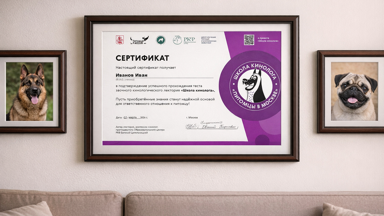 Начните обучение с просмотра кинологического лектория. Это 27 видеоуроков, которые можно изучать в любое время и в удобном режиме. Автор и ведущий — зоотехник-кинолог, преподаватель Образовательного центра Российской кинологической федерации Евгений Цигельницкий.