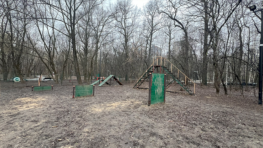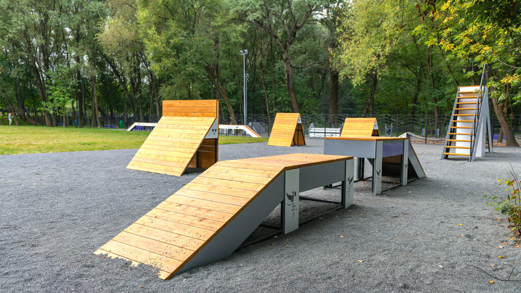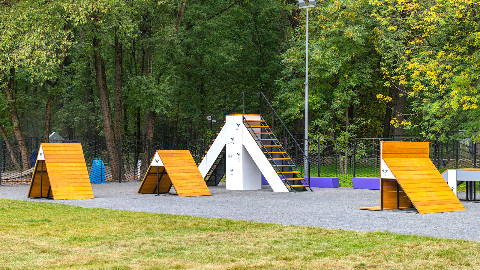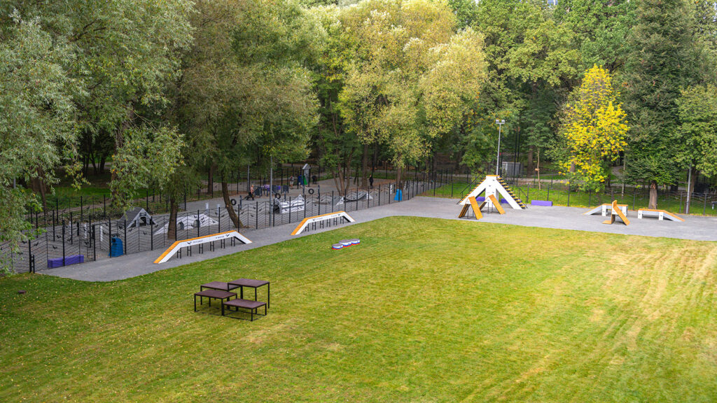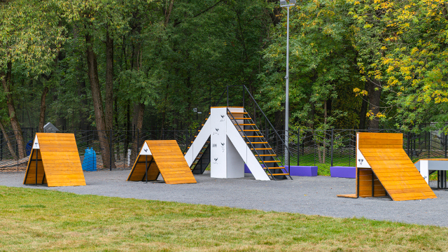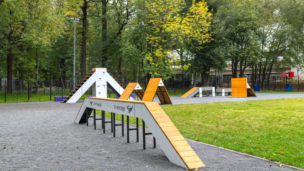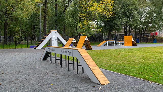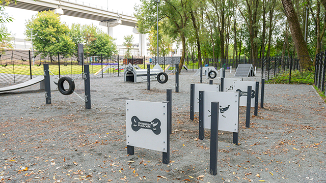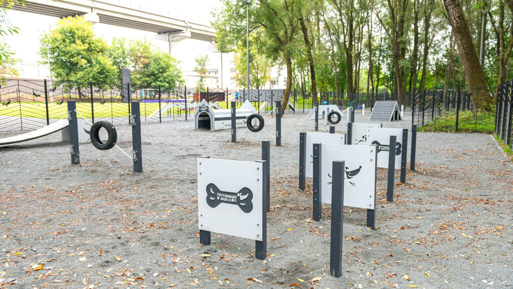 Для владельцев собак организована отдельная зона для выгула и дрессировки питомцев на которой установлены лучшие для животных снаряды, например, бум и барьер «Перекладина» для развития координации движений и выносливости, наклонная стенка для преодоления препятствия, тоннель, который помогает побороть страх животного перед закрытыми пространствами, а также лабиринт, слалом, мостик и кольца «Шина».