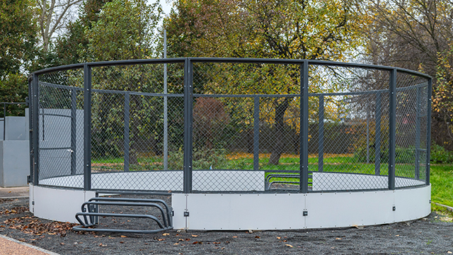 На площадке для выгула собак установили тренировочное оборудование, добавили зоны отдыха для хозяев. Существующие голубятни обновили и разместили в обособленных зонах сада для улучшения его функциональной структуры