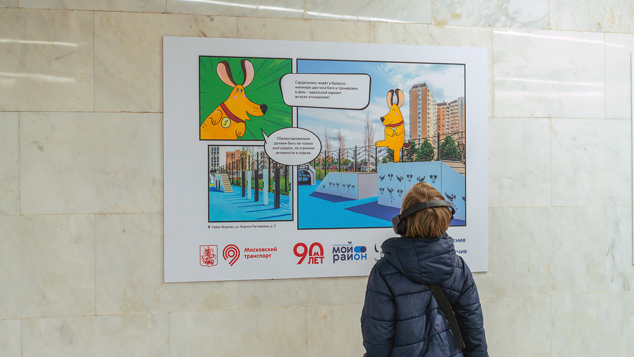Экспозиция в переходе станций «Новаторская» Большой кольцевой и Троицкой линий оформлена в формате комикса. Главные герои выставки — маскоты-финалисты конкурса на создание талисмана проекта «Питомцы в Москве». На 22 стендах размещены фотографии современных площадок для выгула и инфографика с ответами на популярные вопросы о том, как правильно гулять с питомцем в городе.